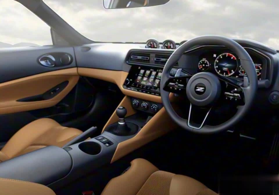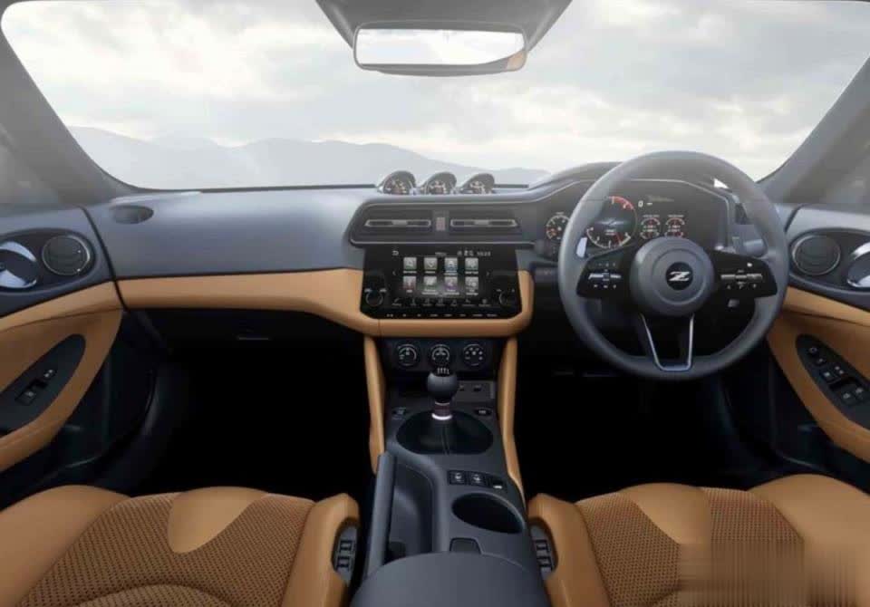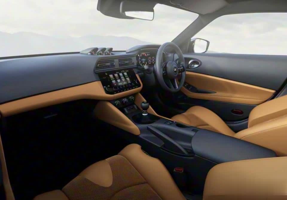 内饰延续复古与现代融合的风格,核心布局基本不变,新增浅棕色皮革材质选项,提升豪华质感。仪表盘保留经典的三圆模拟仪表,搭配12.3英寸全数字TFT显示屏,可自定义显示动力输出、扭矩分配等关键数据,中控台配备8.0英寸触控屏,支持多媒体交互与手机互联,空调控制开关布局在挡杆附近,操作便捷。座椅采用GT-R开发经验优化设计,大面积麂皮材质增强包裹性,有效抑制激烈过弯时的车身晃动。