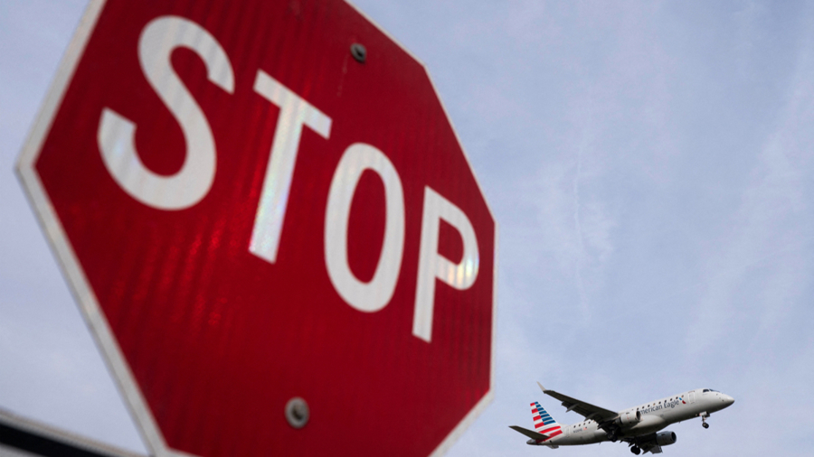 11月7日,一架飞机准备降落在美国弗吉尼亚州阿灵顿的里根国家机场。\n 新华社发