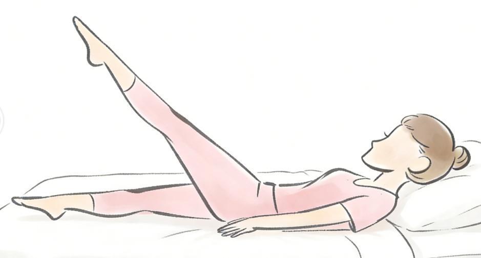 具体做法:仰卧在床上,双腿伸直,勾脚并缓慢抬起一条腿至与床面呈30度角,保持5秒后放下,换另一条腿重复做。每组15~20次,每天做3~5组。