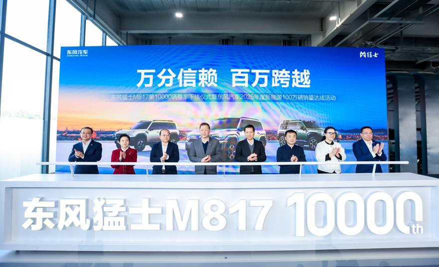 2025 年,东风岚图建立了覆盖 SUV、MPV 和轿车三品类的产品矩阵,累计销量已突破 30 万辆,站稳高端新能源市场;东风奕派、东风风神,聚焦主流市场,增速跑赢大盘;豪华智能越野第一品牌“东风猛士”,以“硬核科技、极致电动、颠覆创新、全域通达”的品牌价值,形成猛士 917、M817 双车矩阵,为用户提供世界级东方越野体验。今天,猛士 M817 第一万台整车下线,便是源于用户对猛士硬核实力的信赖。至此,东风新能源已实现从研发到制造的全面跃迁,展现出新质生产力的强劲动能。