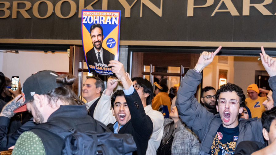 11月4日,支持者在美国纽约庆祝马姆达尼获胜。\n 新华社发